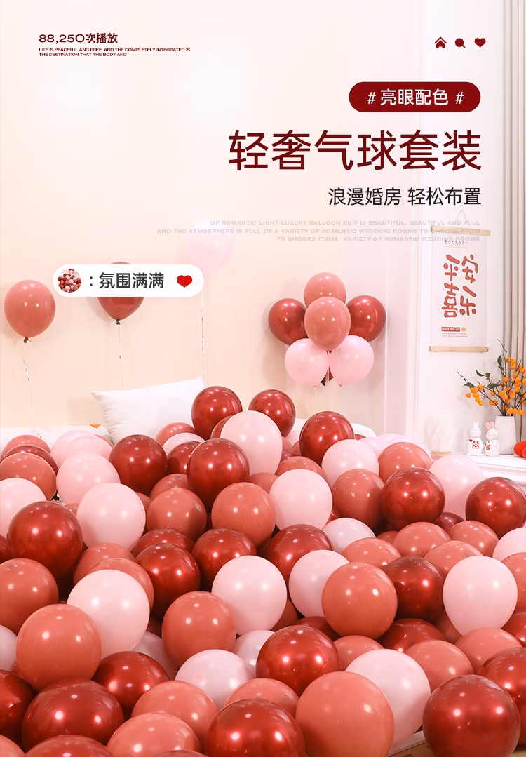 轻銮(QINGLUAN)结婚气球地飘婚房单元门布置婚礼迎宾路引客厅场景氛围立柱装饰品