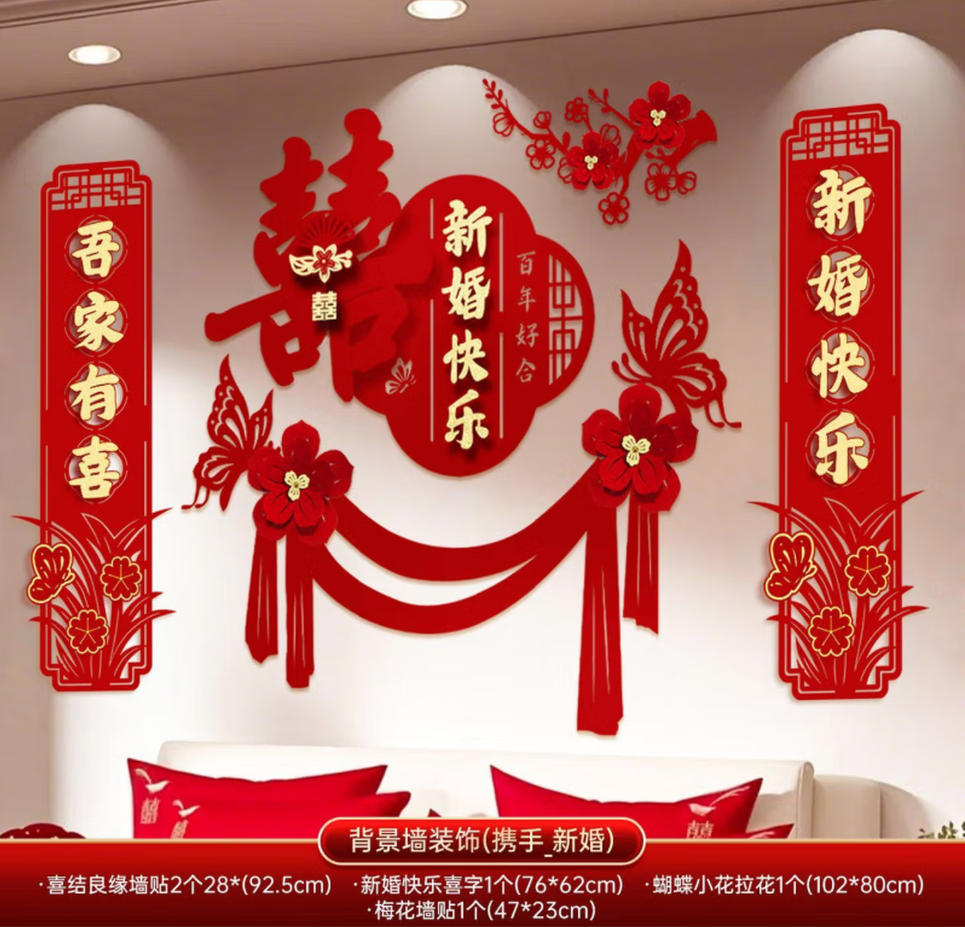 目送(musong)婚房布置套装婚礼装饰拉花闺房床头酒店氛围...