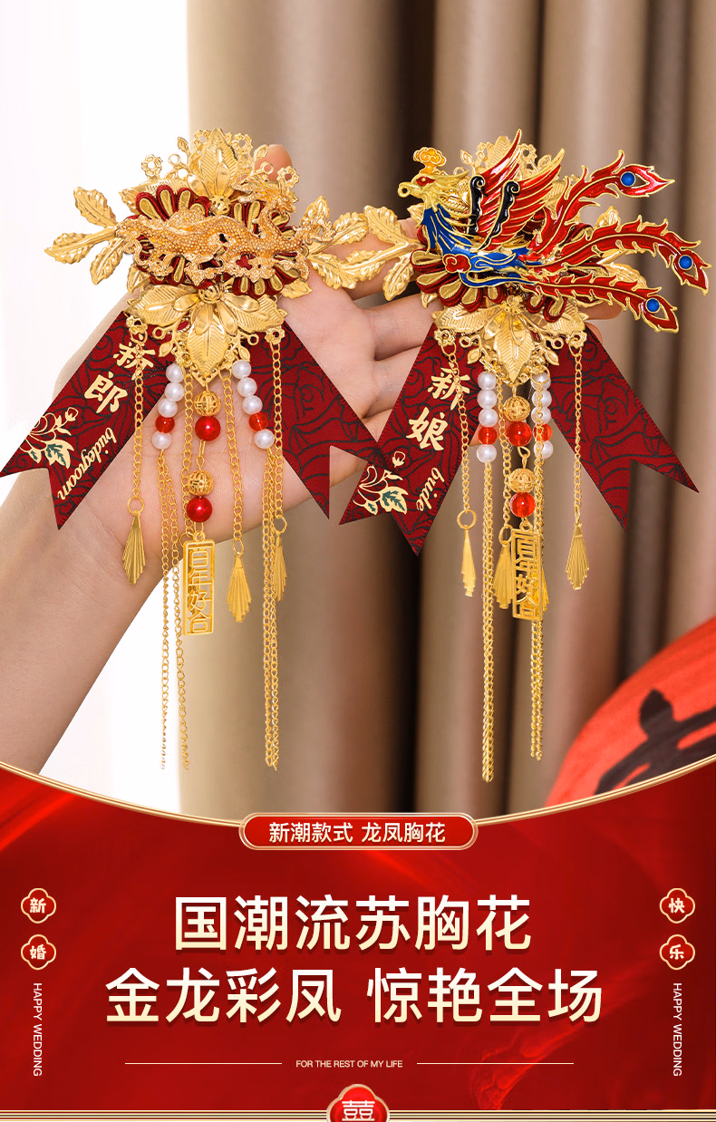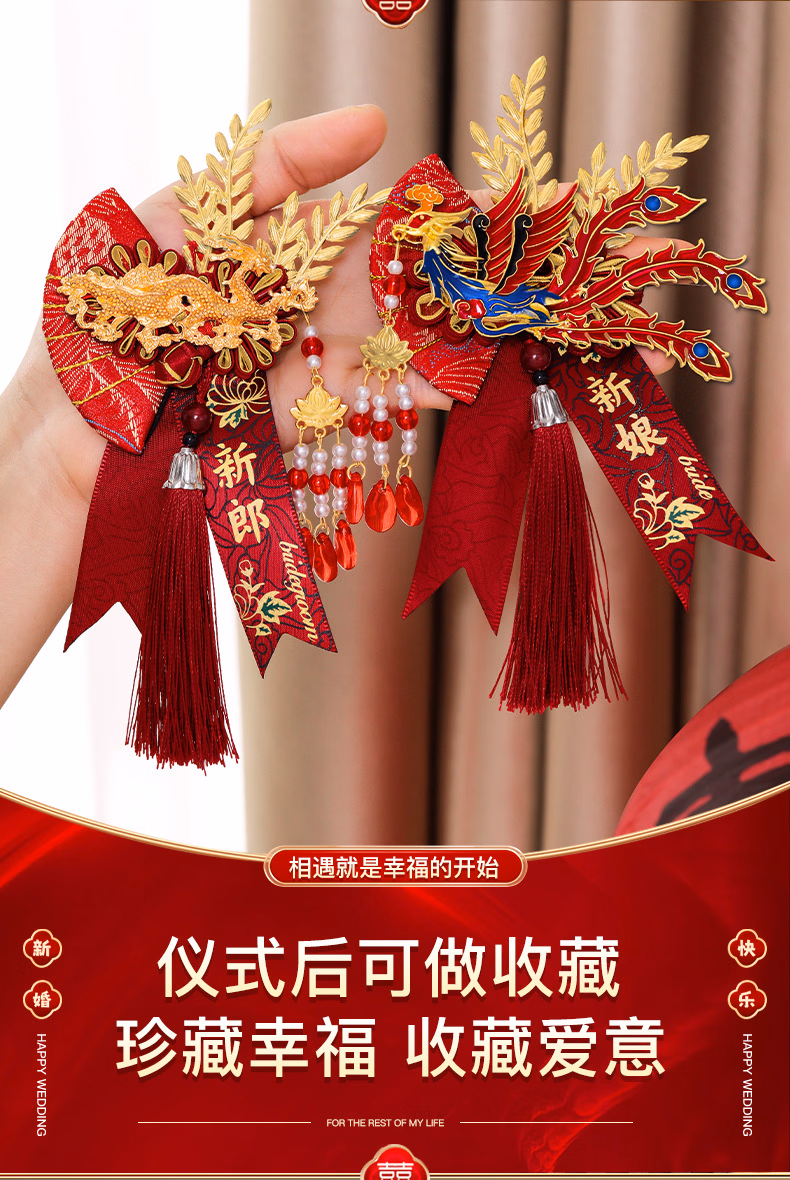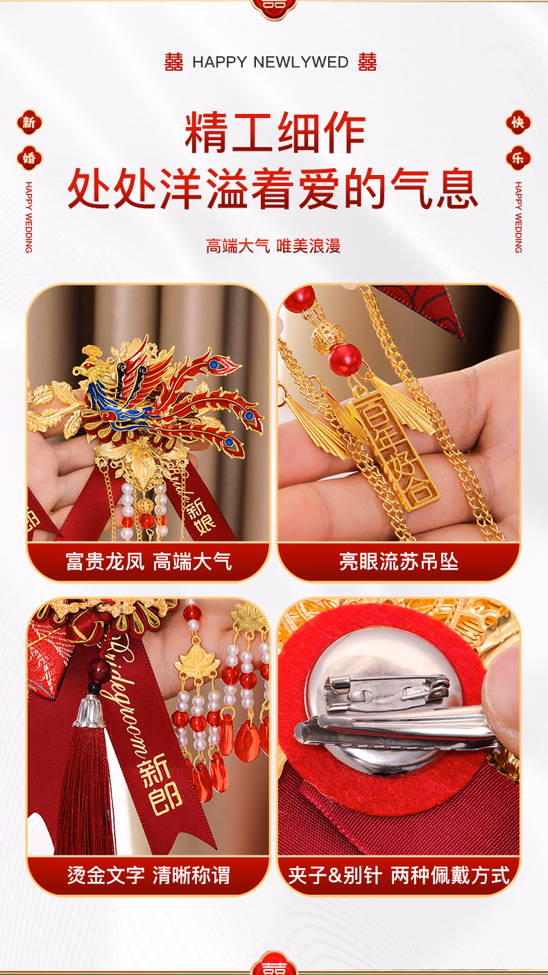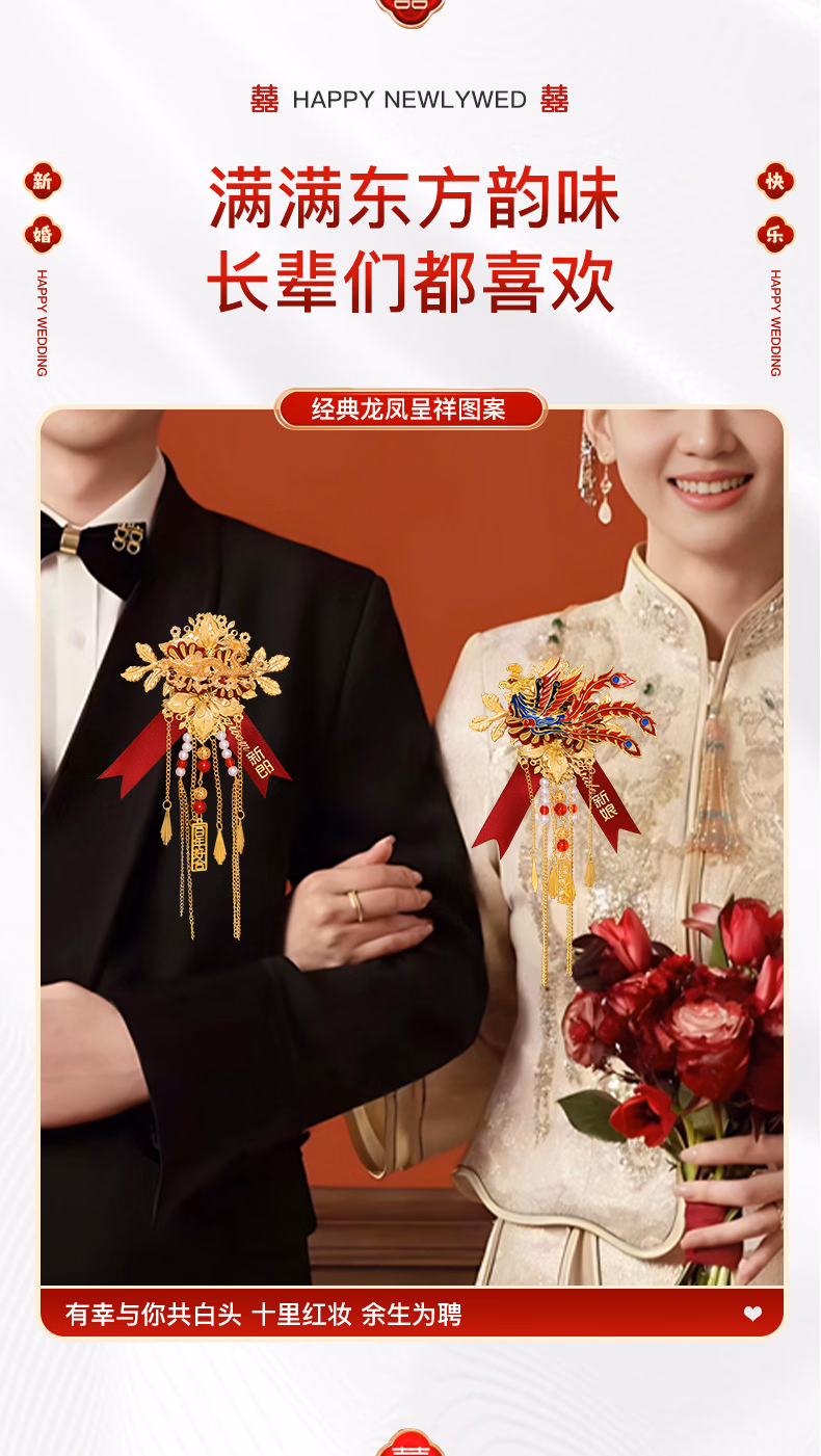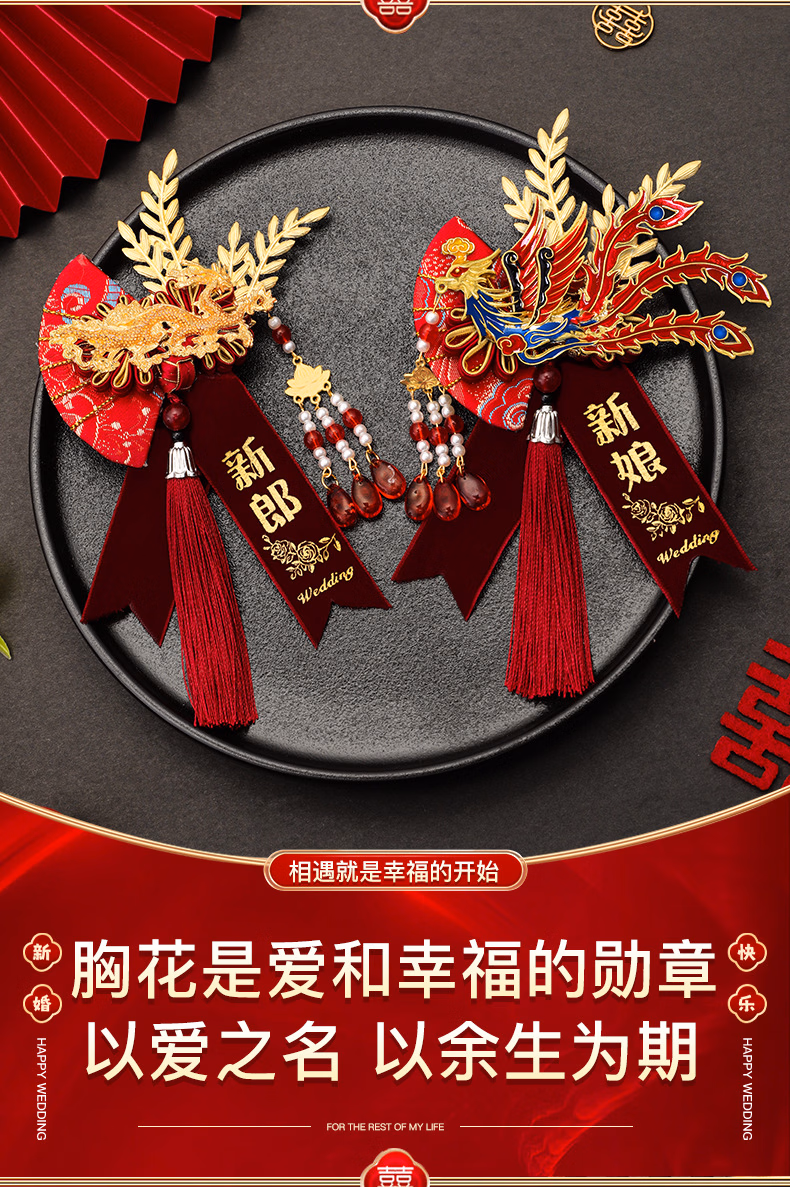 产品名称 : 乐睦唯(L'AMAVO)结婚胸花高档新郎新娘胸针一对高级感襟花全套家人备婚礼用品大全 丝绒珠花镶钻喜款【新郎新娘】