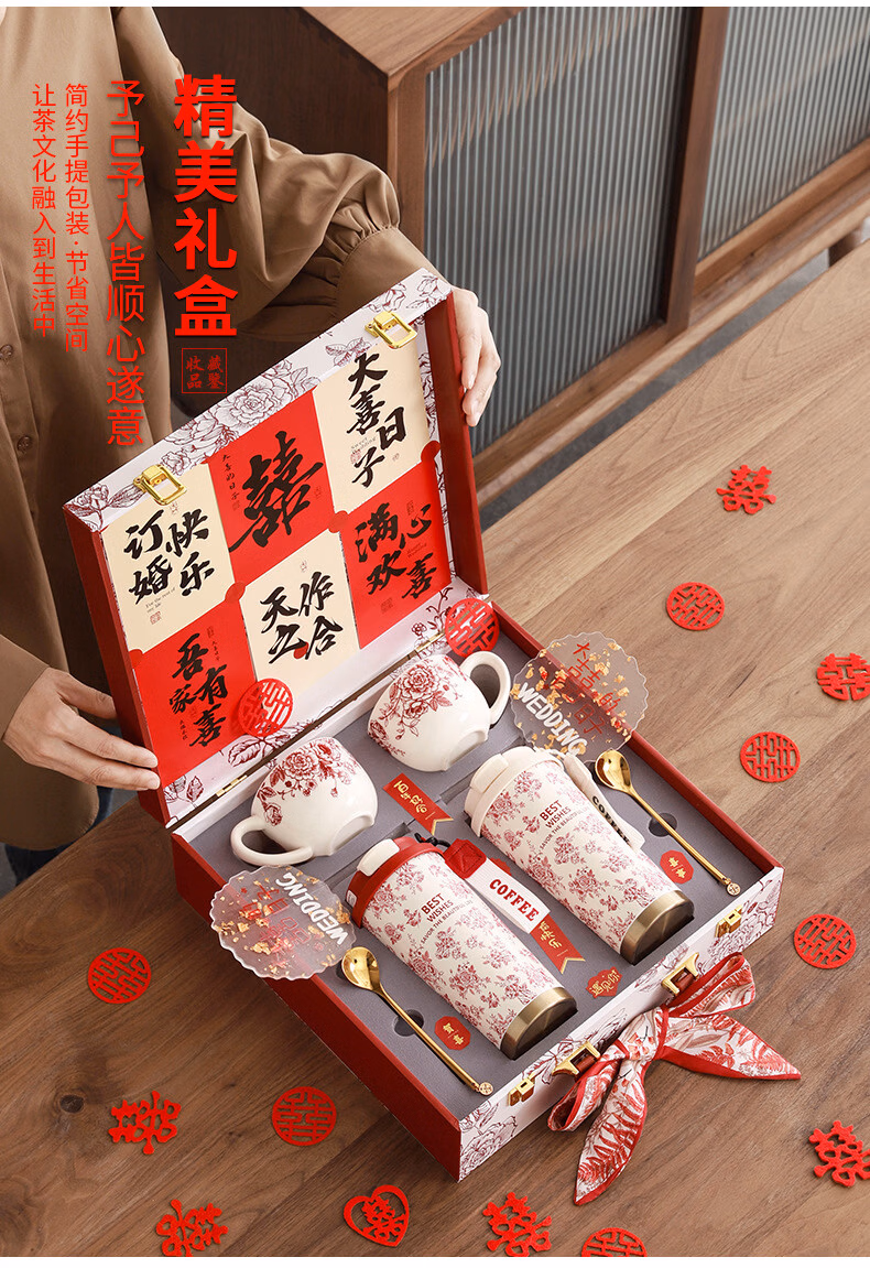 产品名称 : 贝初众新婚结婚礼物送新人新娘闺蜜订婚高档实用有纪念意义伴手礼盒创意 假日玫瑰-结婚版【保温杯+咖啡杯+杯垫+勺子】礼盒装 (赠卡纸+小喜字)礼赠新人 祝福升温