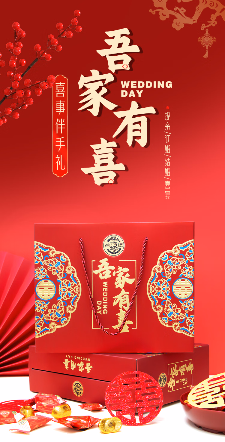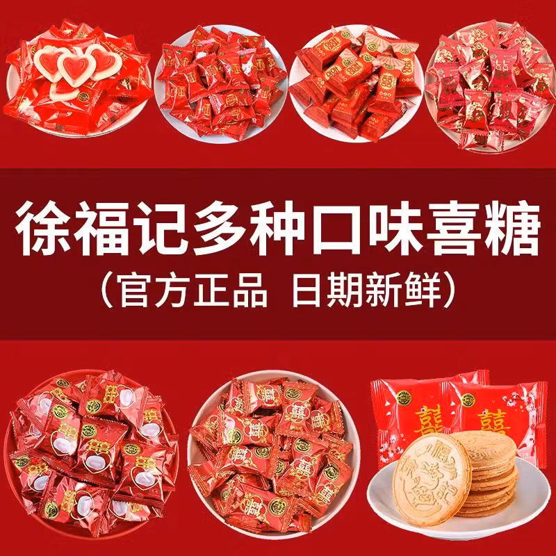 产品名称 : 徐福记喜饼喜糖礼盒装结婚订婚提亲婚庆夹心饼干嫁女混合喜糖喜饼大礼箱 500g*1箱婚庆喜饼礼箱装