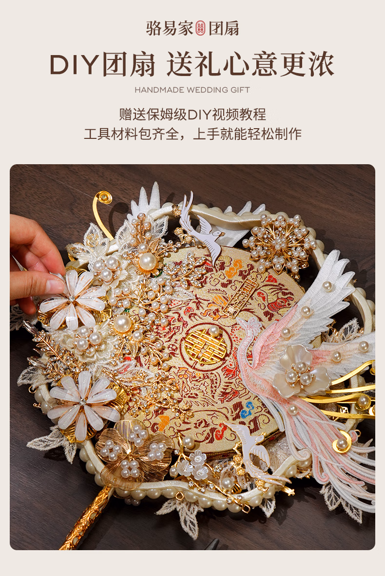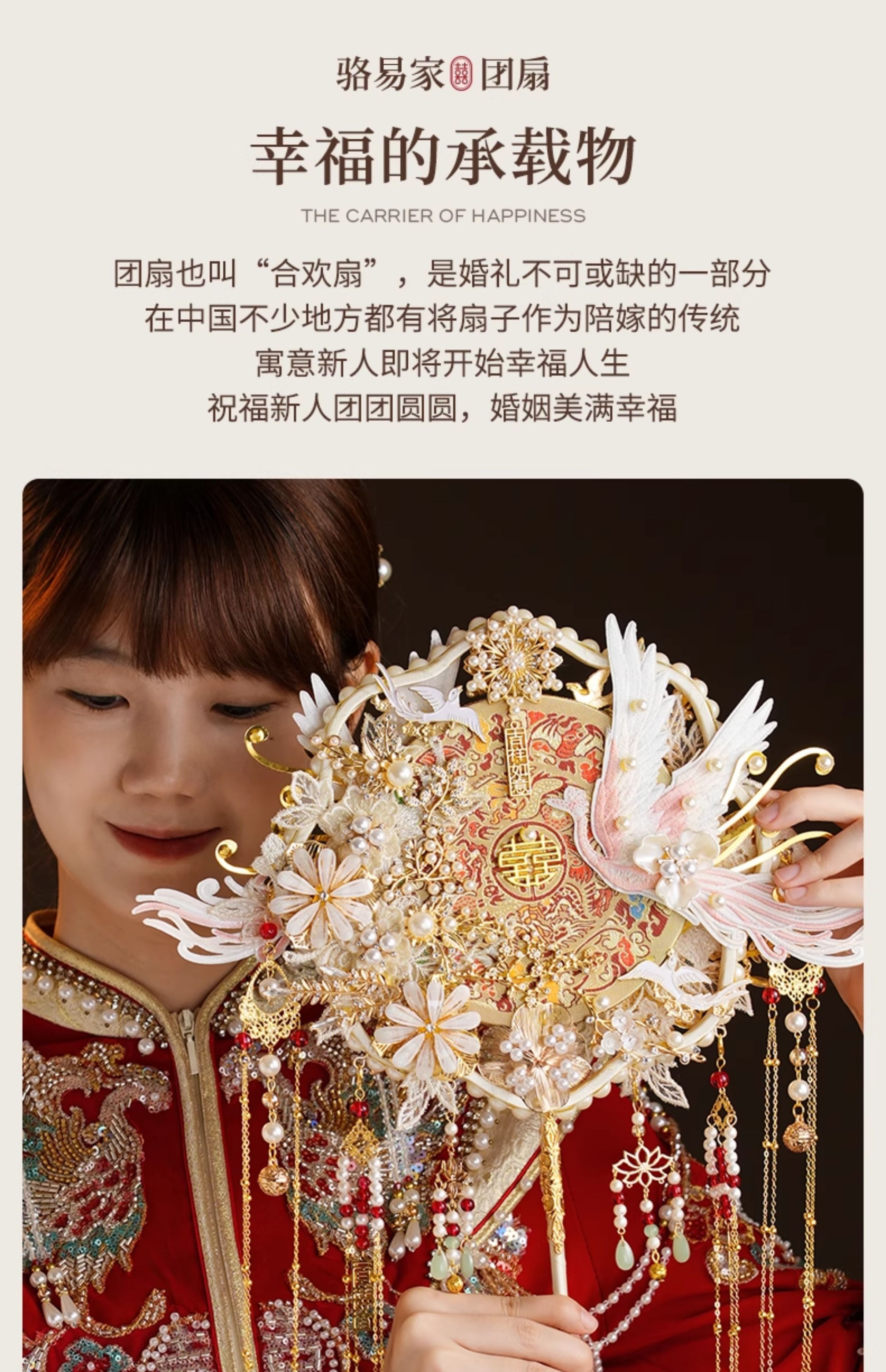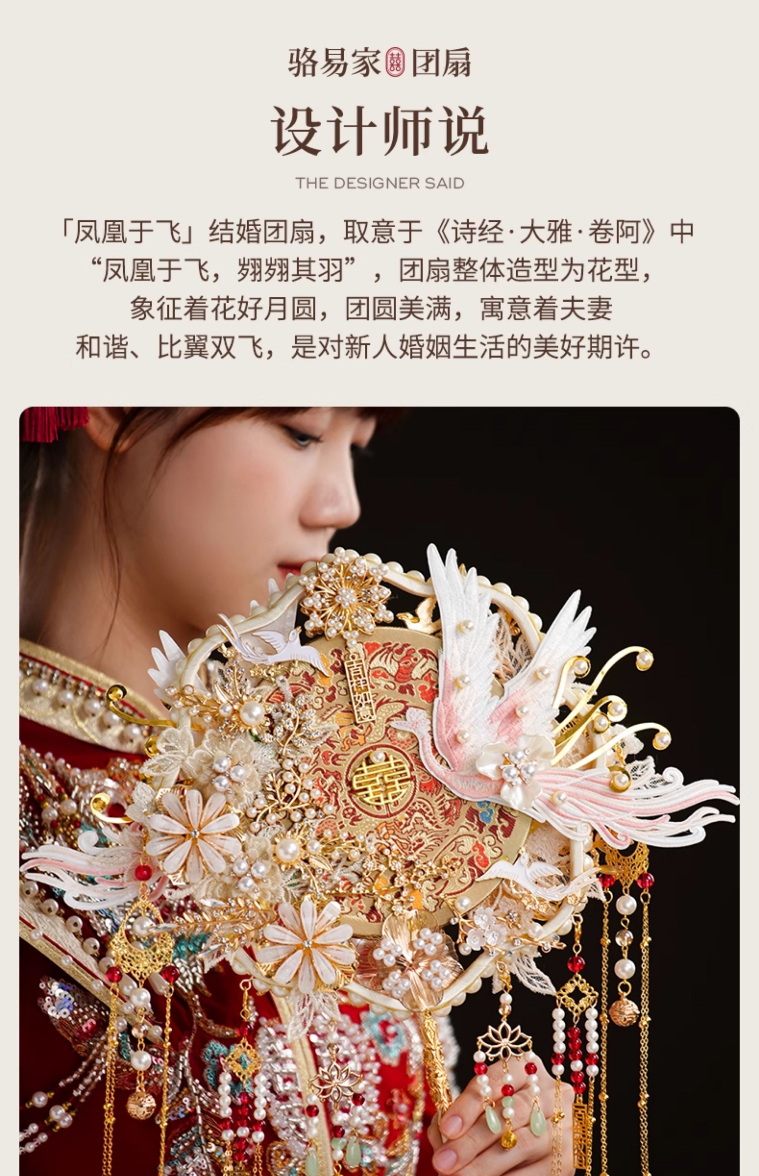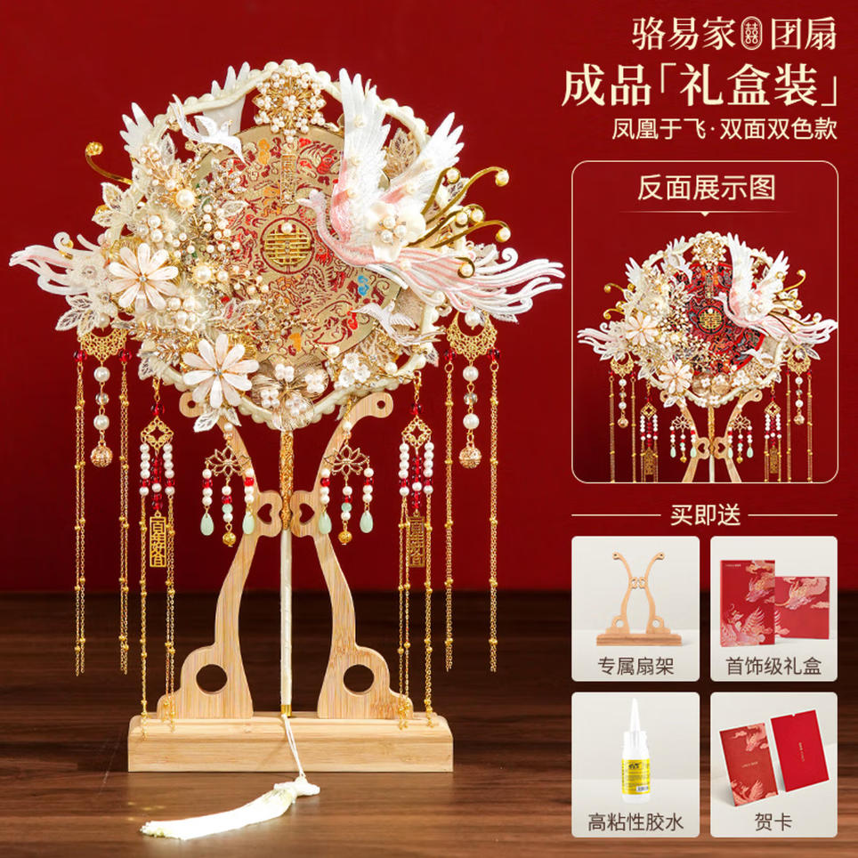 骆易家(Lorica)团扇新娘结婚双面高级十里红妆秀禾中国风喜扇diy材料包成品 凤凰于飞-成品(礼盒装) 双面双色/精美龙凤礼盒