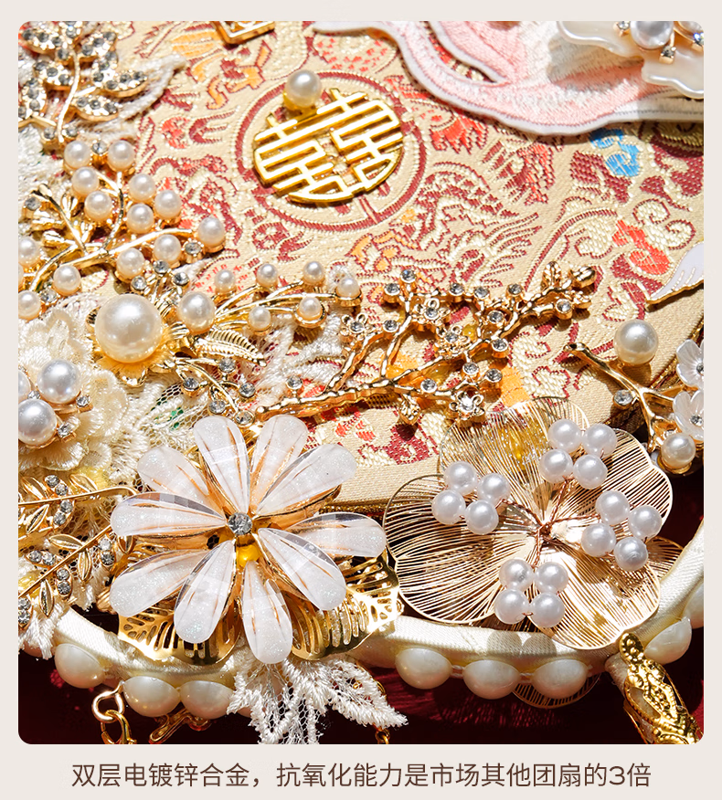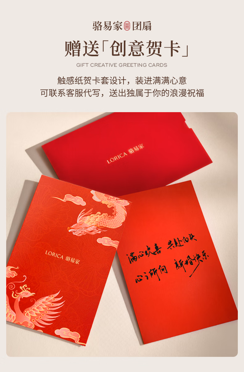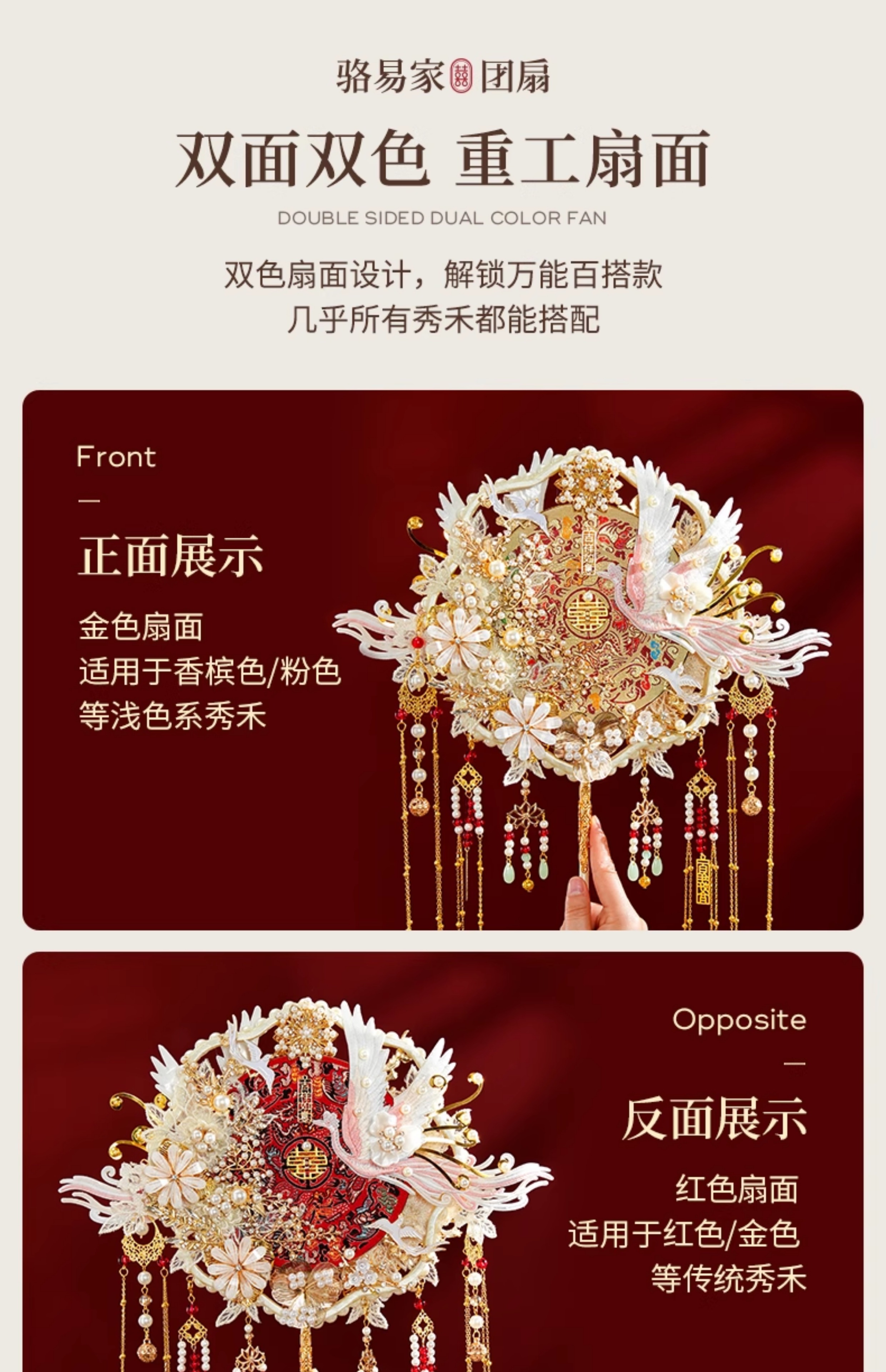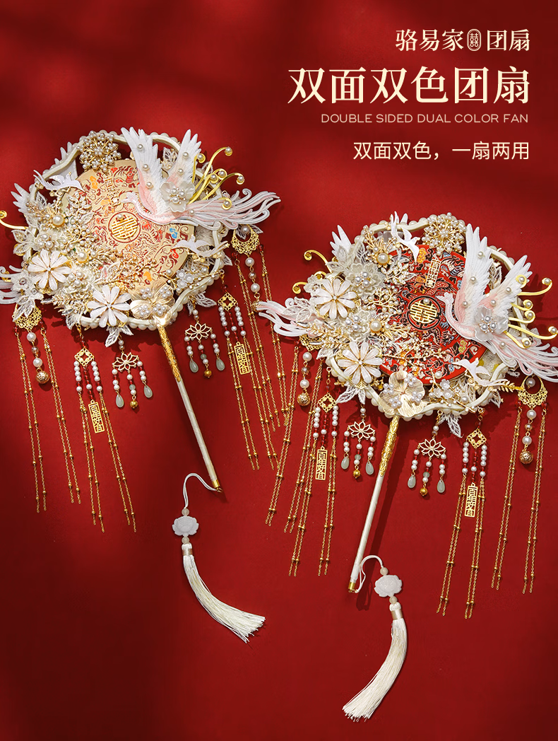 骆易家(Lorica)团扇新娘结婚双面高级十里红妆秀禾中国风喜扇diy材料包成品 凤凰于飞-成品(礼盒装) 双面双色/精美龙凤礼盒