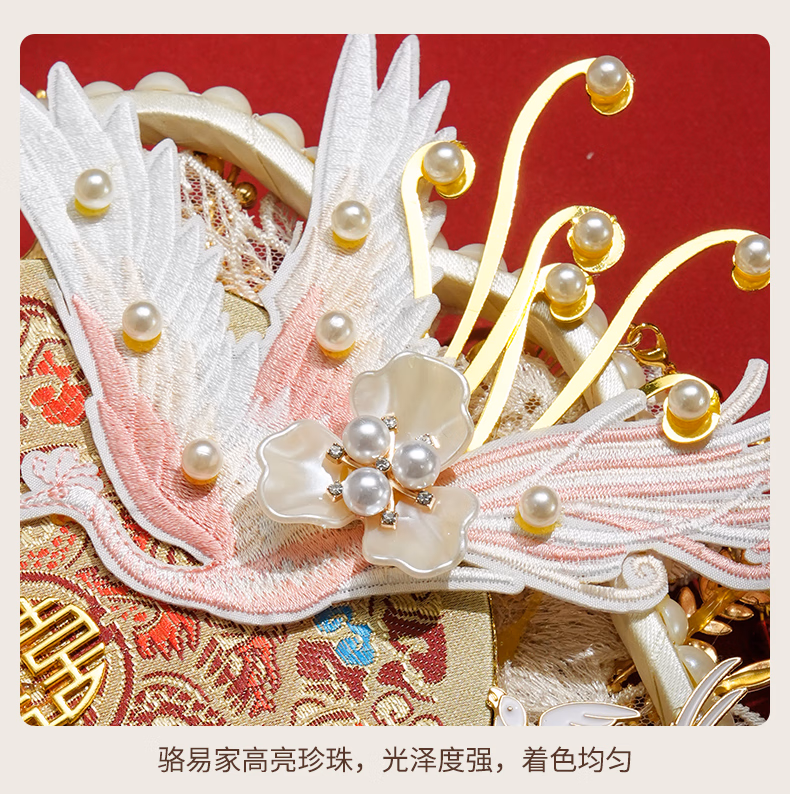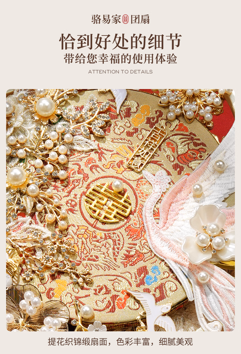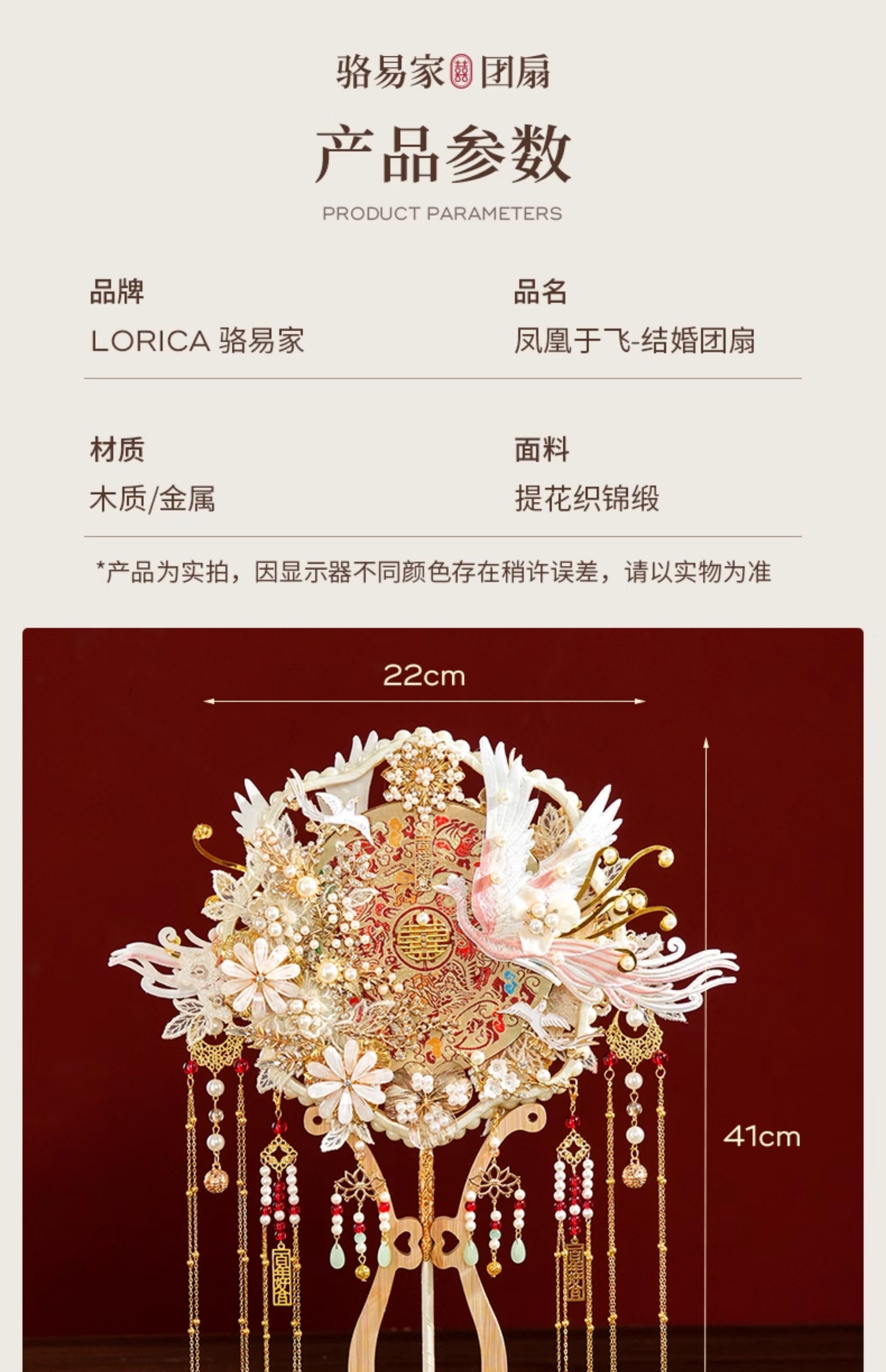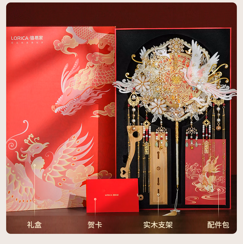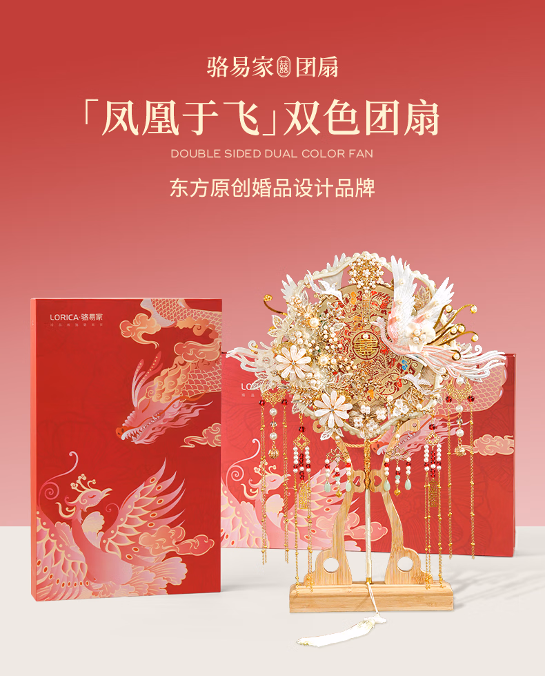 产品名称 : 骆易家(Lorica)团扇新娘结婚双面高级十里红妆秀禾中国风喜扇diy材料包成品 凤凰于飞-成品(礼盒装) 双面双色/精美龙凤礼盒